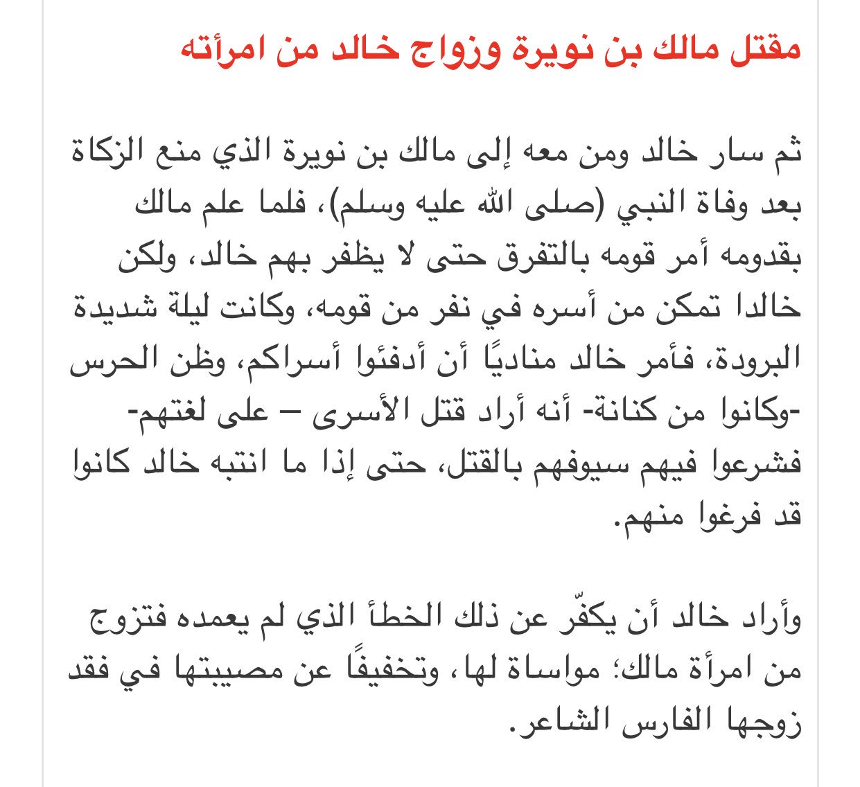 مكس معجب En Twitter هذه قصة قتل مالك بن نويرة و زواج خالد ابن الوليد من امرأته رضي الله عنه وارضاه