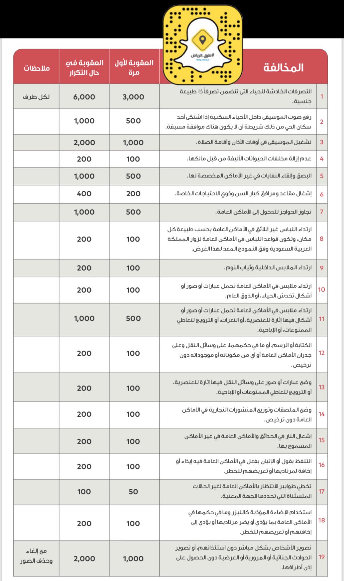طرق الرياض Auf Twitter تصنيف مخالفات لائحة المحافظة على الذوق العام والغرامة المحددة لكل منها وقد دخلت المخالفات حيز التنفيذ من اليوم السبت 28 سبتمبر 2019 م Https T Co L2etn3l8z0