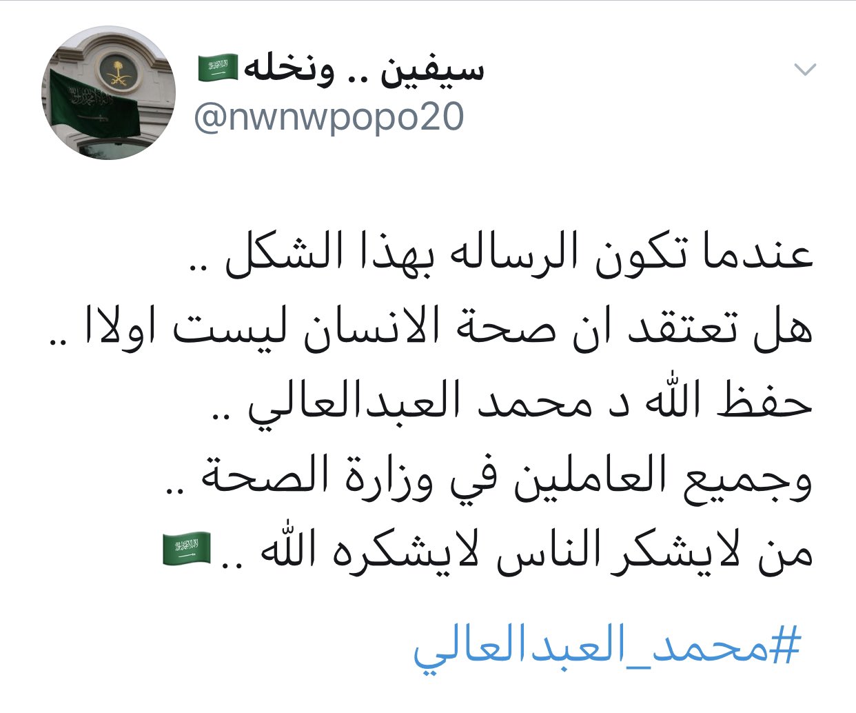 غاية 24 On Twitter من لا يشكر الناس لا يشكره الله رسائل وتغريدات شكر وتقدير للدكتور محمد العبد العالي متحدث وزارة الصحة من المواطنين والمقيمين على جهوده في أزمة وباء