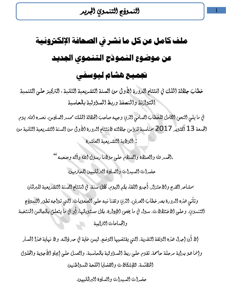 ملف كامل عن النموذج التنموي الجديد Pdf